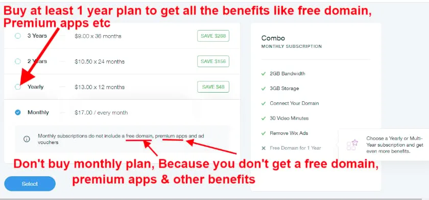 If you are confused about which plan to buy, then here is a wonderful guide about it -> Wix Pricing – How To Avoid Wrong Plan & App Mix (Save 40% Every Year)