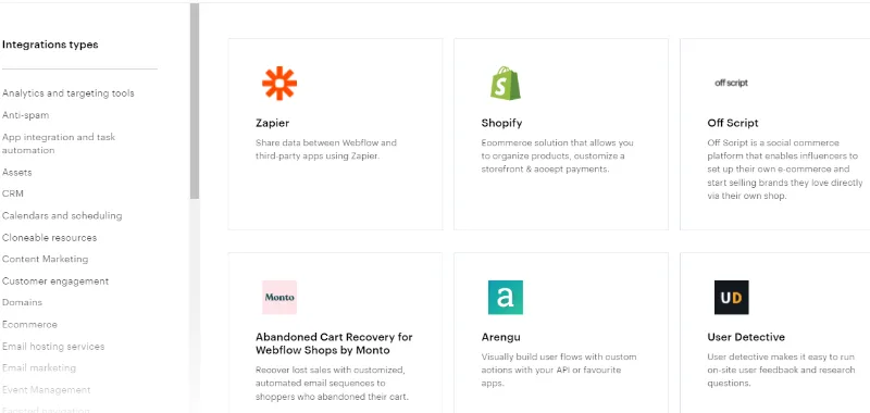 Webflow is an emerging website builder that provides excellent customization and design options. They have provided various built-in free and paid themes for all kinds of websites. Webflow offers integration with third-party apps which need to be manually installed inside the website.